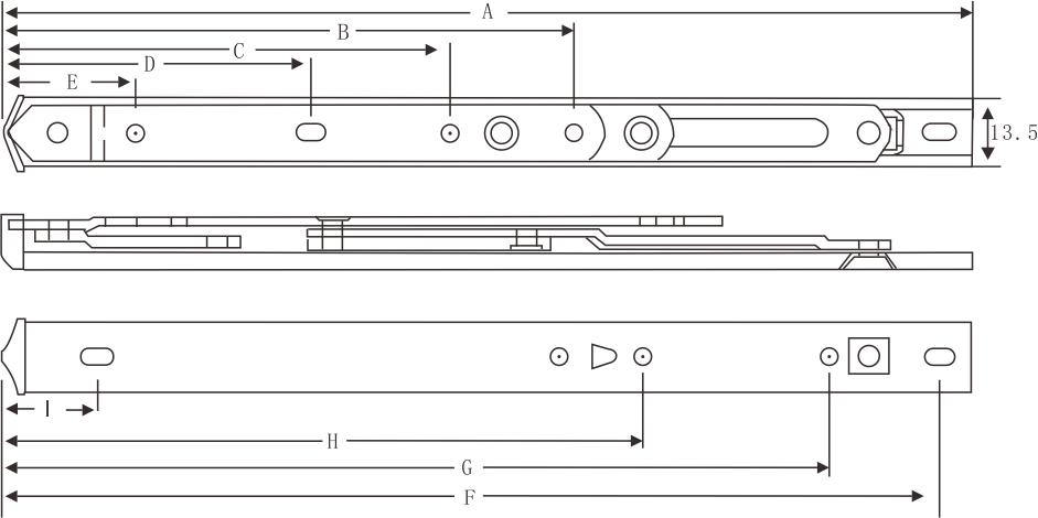 连杆数量 折片厚度(mm) 规格\值 A B C D E FGI 窗最高(mm) 窗最宽(mm) 窗最重(kg) 开启角度(±2°)